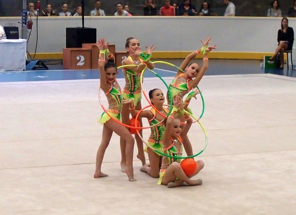 Úvodní sestavu s pěti obručemi jasně ovládl brněnský Tart, který obdržel nejvyšší známku za techniku i provedení i za vystoupení se třemi míči a dvěma švihadly. Po roční pauze tak získal titul mistryň České republiky před dalším brněnským oddílem SKP a domácím Chodovem.
