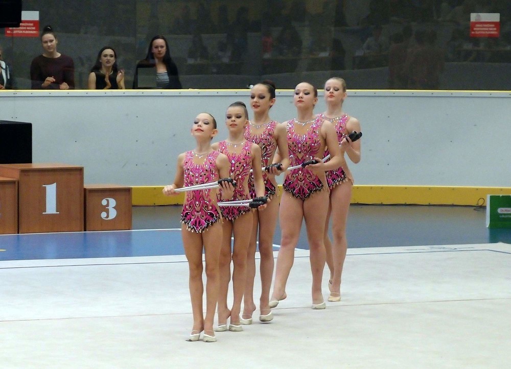 I když společné skladby v moderní gymnastice patří do programu olympijských her, mistrovství republiky se v seniorské kategorii rok od roku účastní méně týmů. Nové sestavy podle pravidel pro nadcházející olympijský cyklus předvedly na letošním šampionátu dokonce jen tři české oddíly.